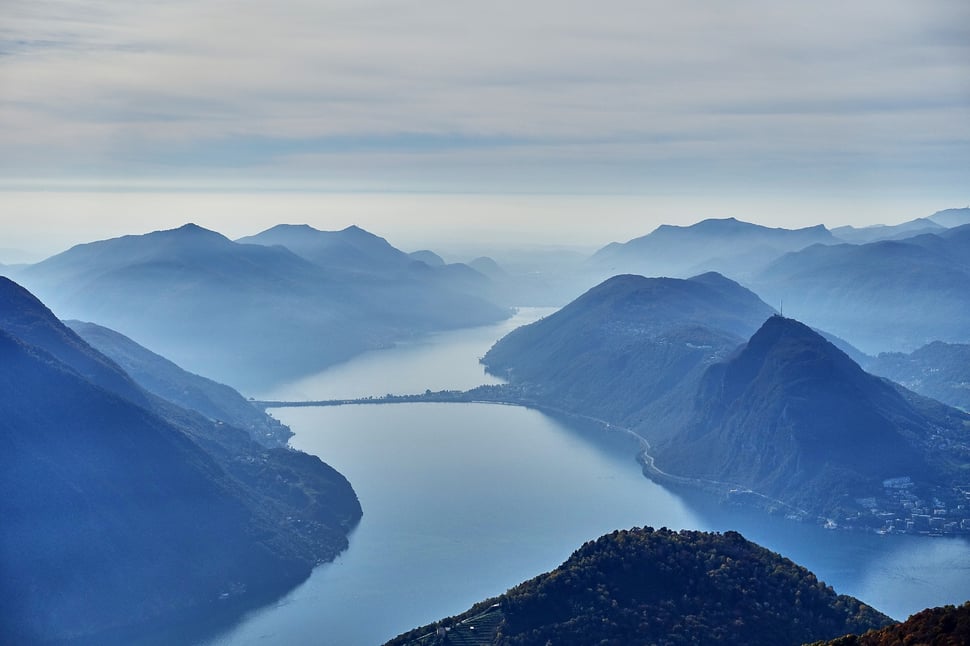 I took this photo while hiking from the top of San Salvatore to Morcote. I like the composition and the shades of blue.